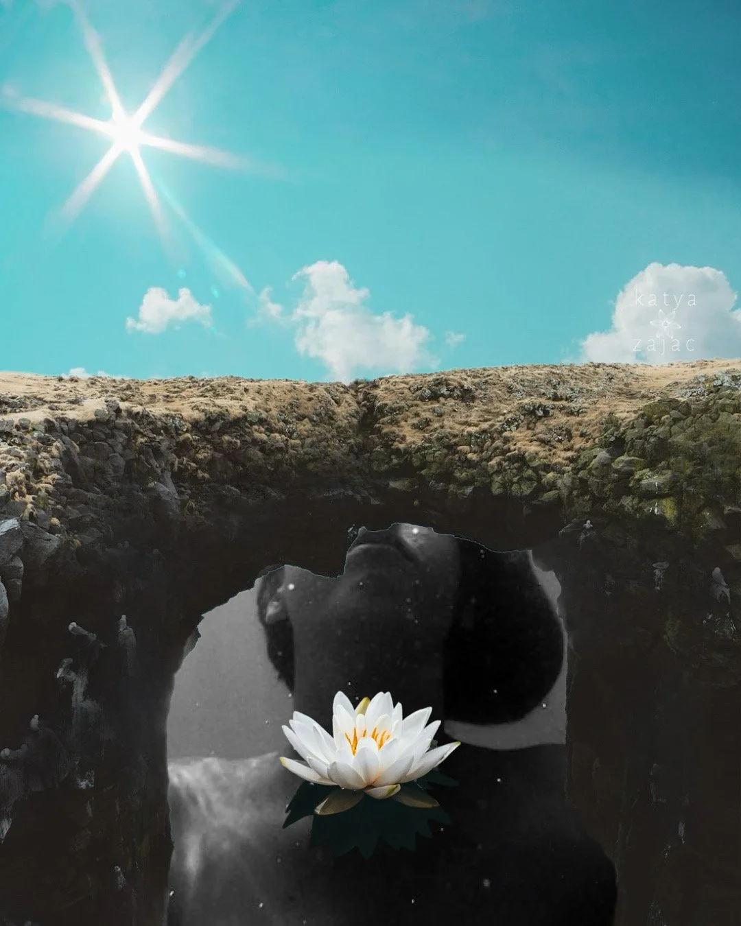this piece holds three anchors: the bridge—the path between what was + what wants to be. the body in water—a vessel of memory, resilience + surrender. the lotus at the chest—the heart blooming from depth, from truth, from lived experience. they form the soul bridge itself. built from presence, not plans.